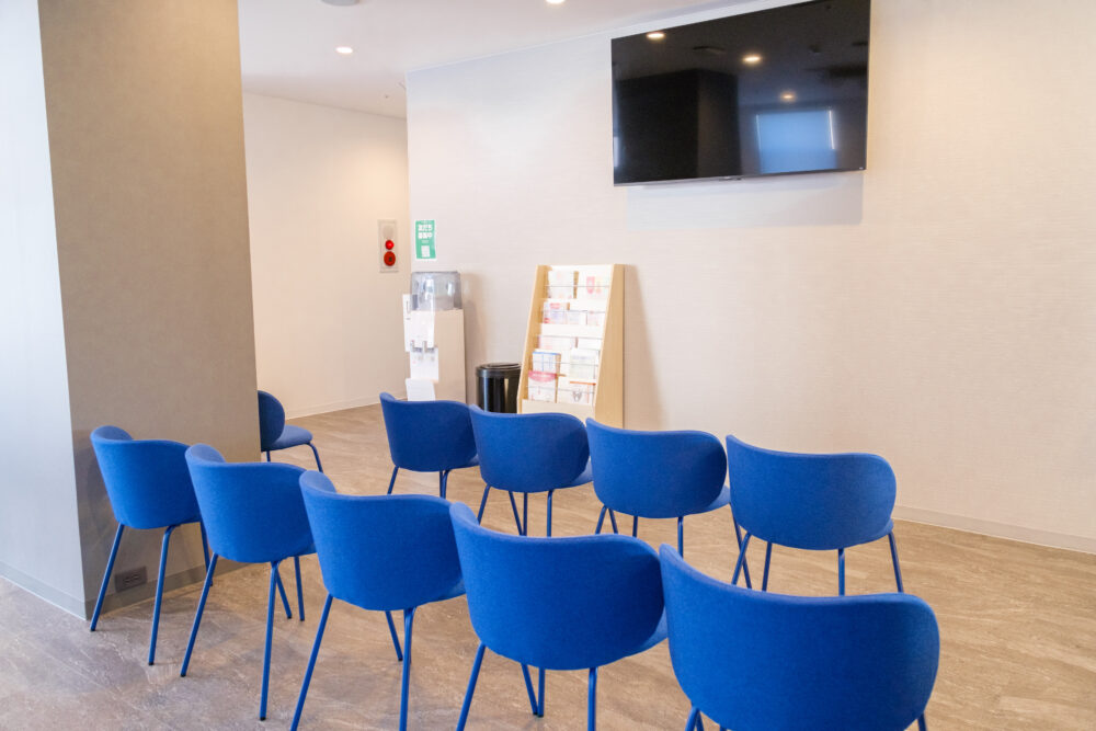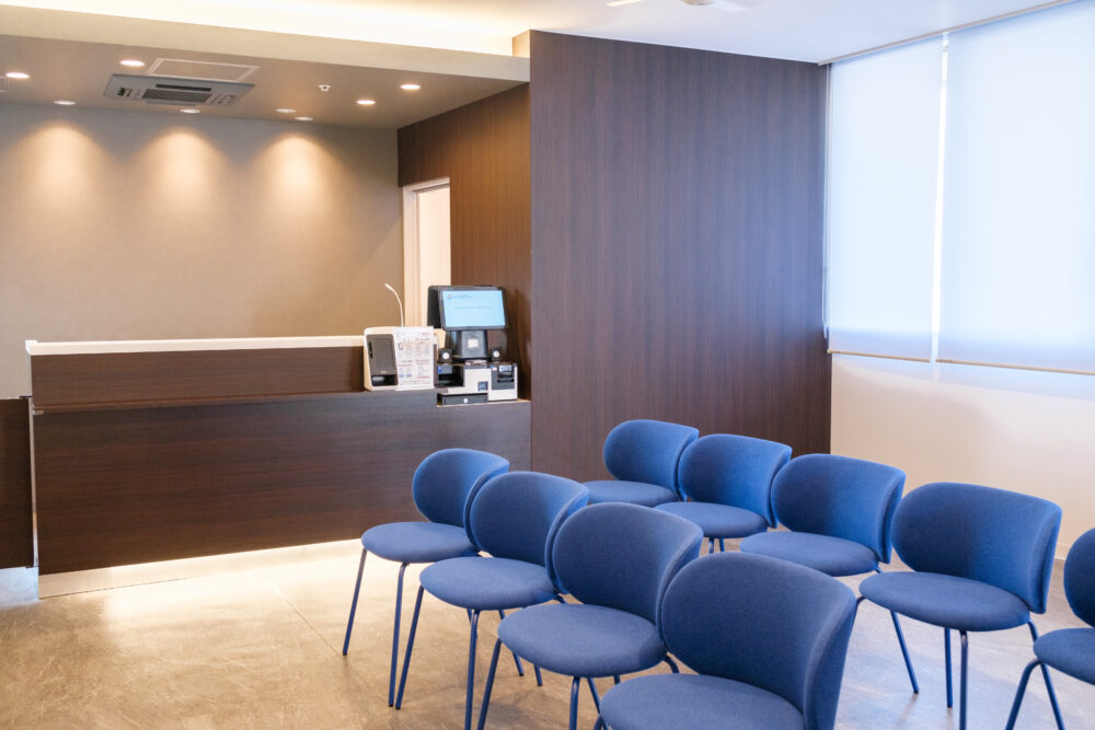待合は落ち着いたブルーで統一し、X線室やトイレも明るく清潔に整え患者様とスタッフの使いやすさを両立しました。
