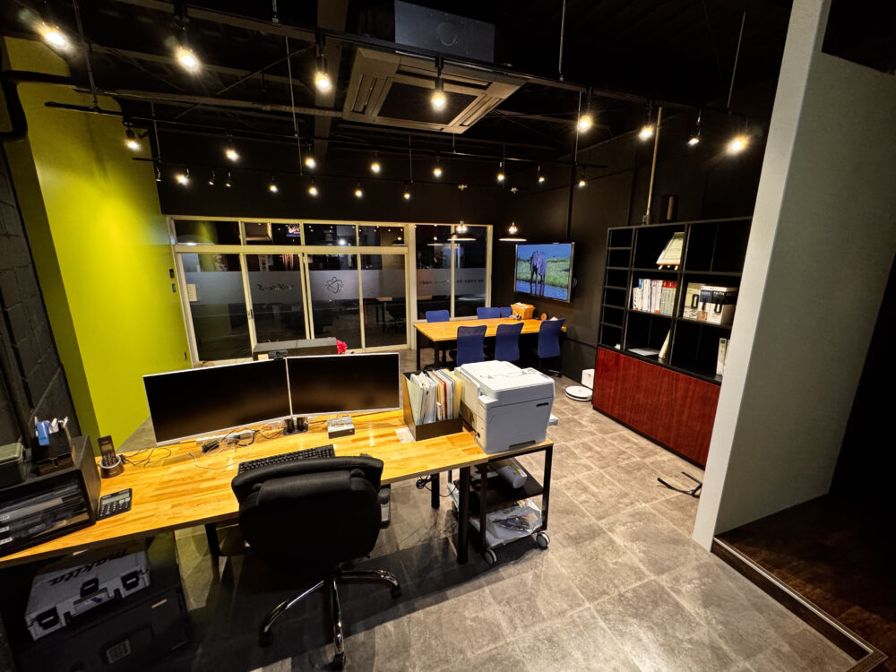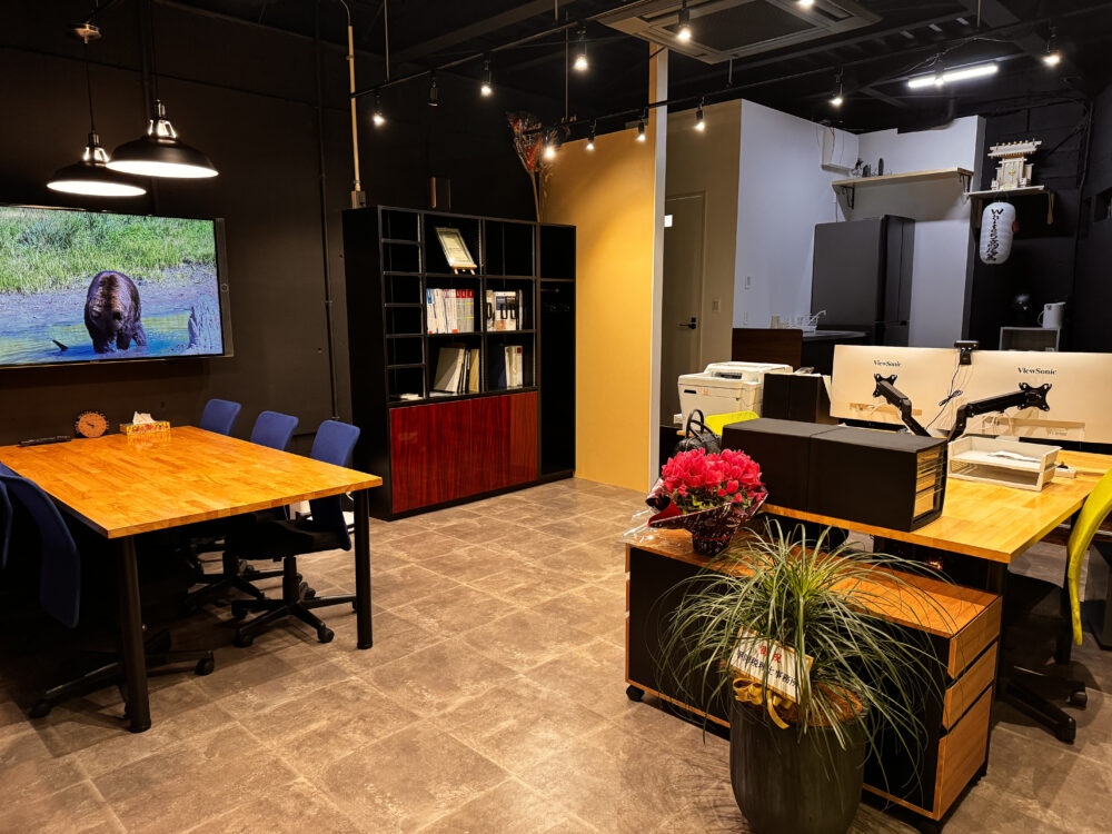 打合せと執務とリラックスのエリアをゆるやかに分け、小上がりのカフェコーナーを演出し、大画面モニターでは社内外のコミュニケーションが自然に生まれる場を目指しました。