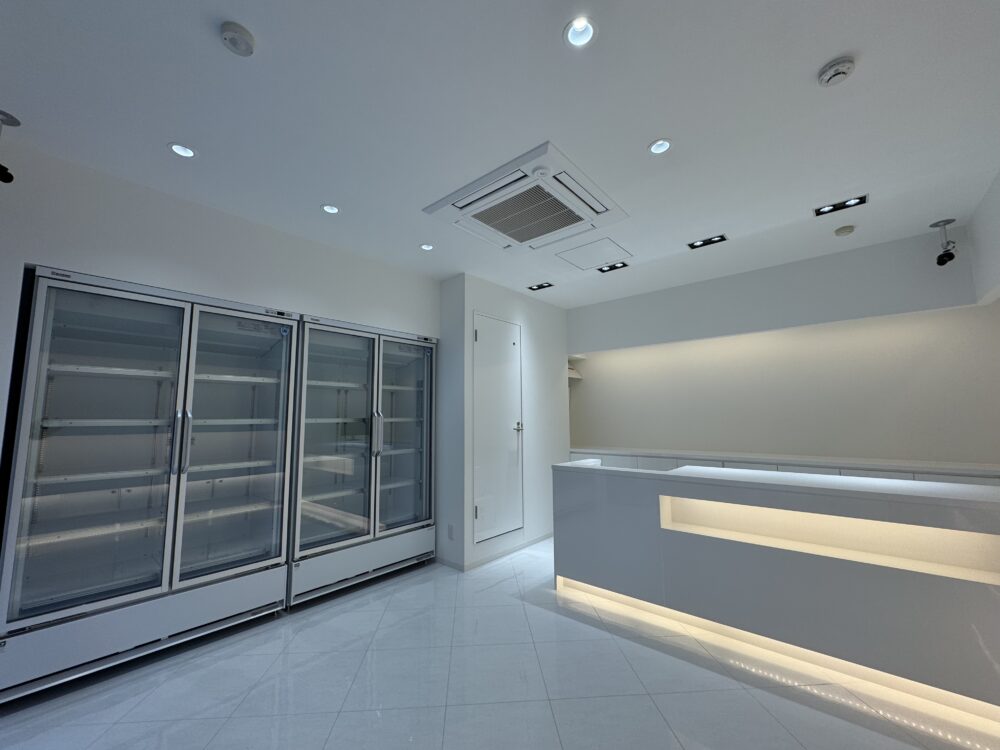冷蔵ショーケースを無理なくレイアウトに組み込み見やすさと補充のしやすさを両立されており、外からの視認性も高くコンパクトでも印象に残る空間です。